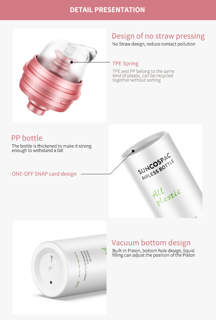 Biodegradable All Plastic Airless Pump Bottles Recyclable Empty Lotion bottle Plastic Mono Material Cosmetic bottle Images |